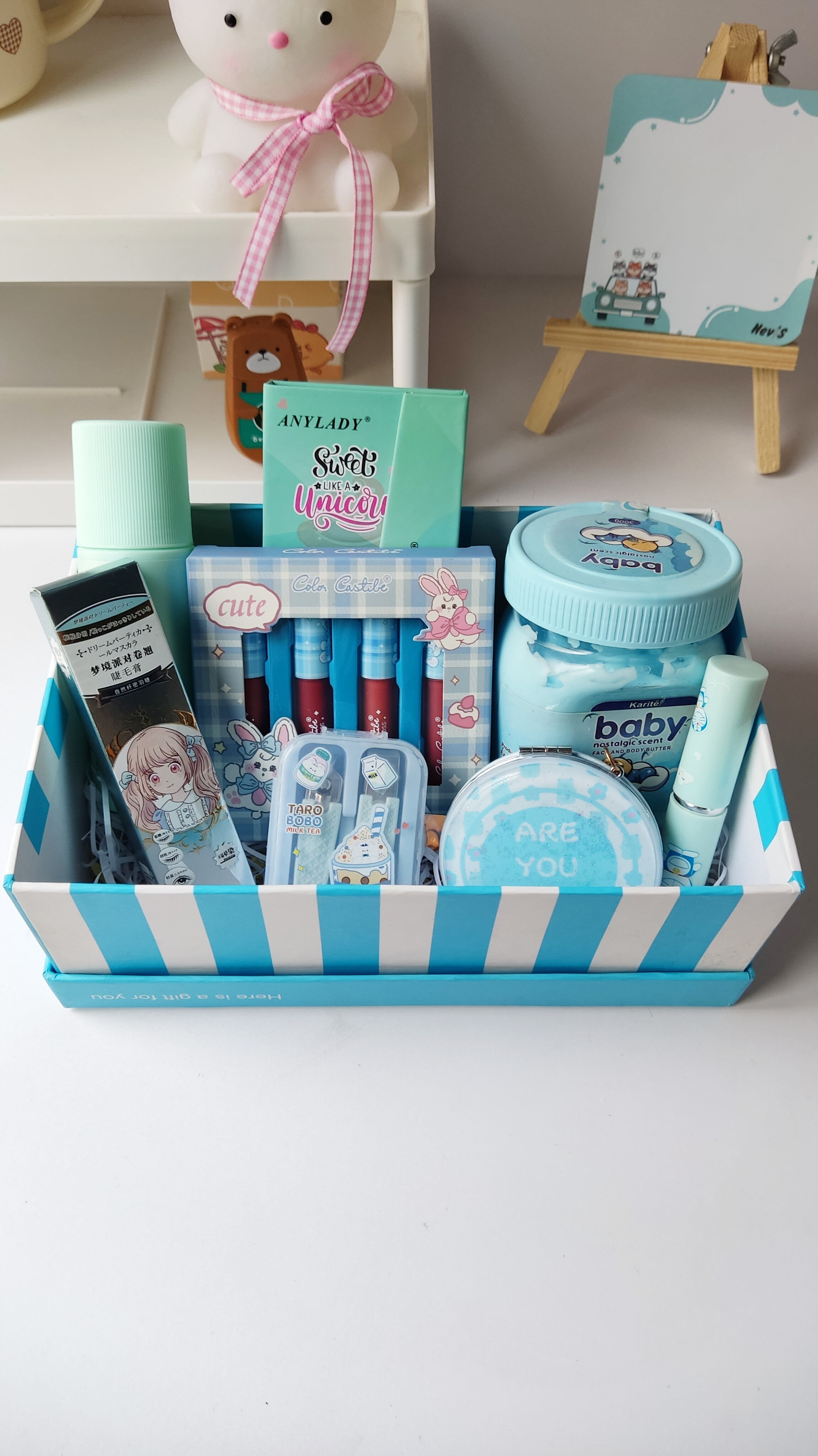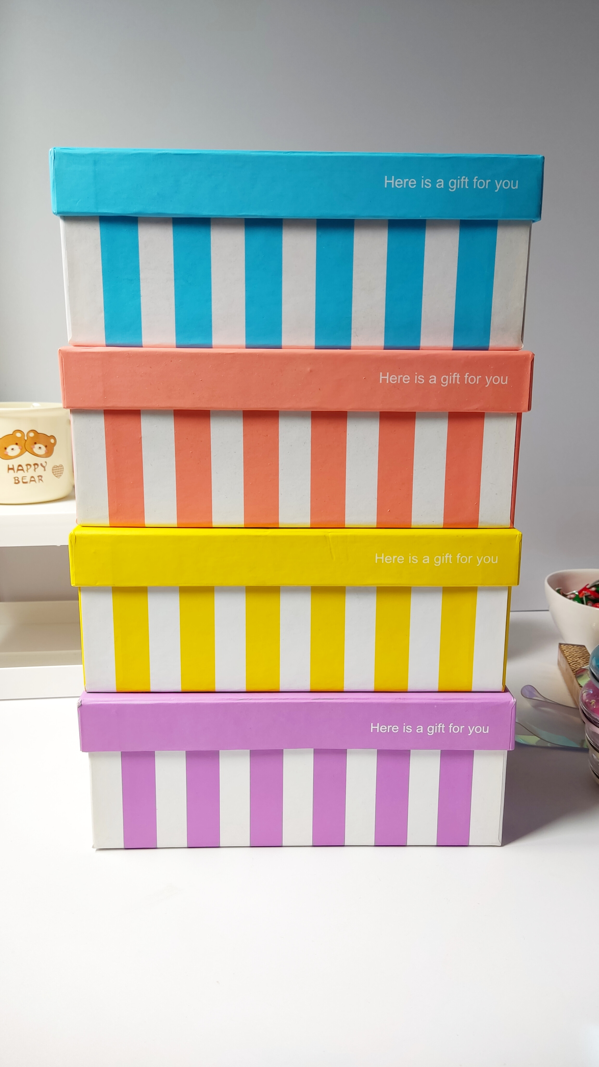 اگه میخوای ی رنگ خاص هدیه بدی این باکس رنگی عالیه ،،،سایزش متوسط نمونه عکسش خیلی ساده چیده شده گذاشتم ،،،ترکیب محصولات بزرگ وکوچیک خیلی خوشگل میشه میتونی ۵تا محصول بزرگ و ۵تا محصول کوچیک بهش اضافه کنی