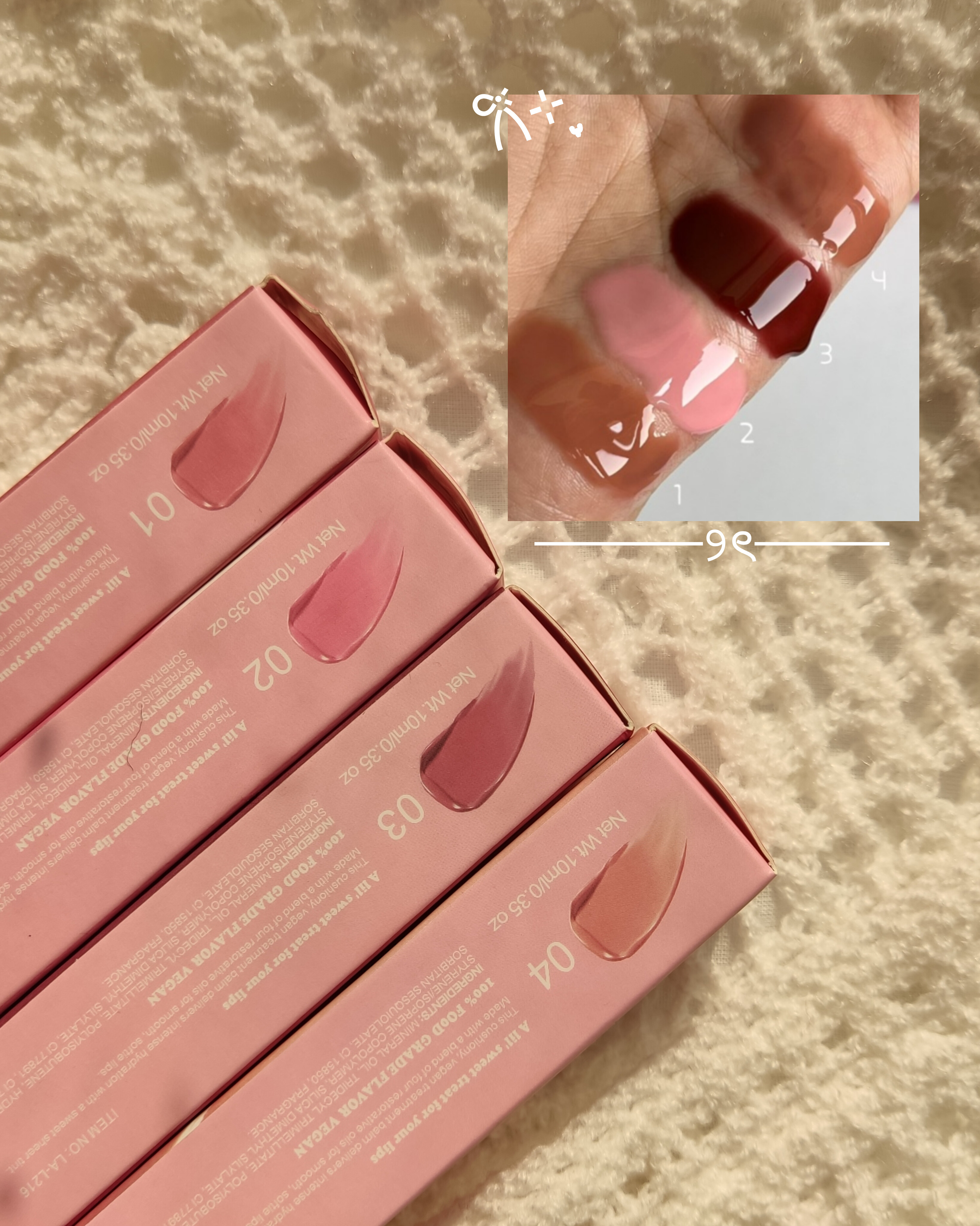 بافت سبک و شفاف داره رو لب خیلی جذاب میشه،رایحه خوبی داره و باعث نرم تر شدن لب میشه،۴تا رنگ کاربردی و خوشرنگ داره🍨🍭🍩🍉،انقضا ۲۰۲۹