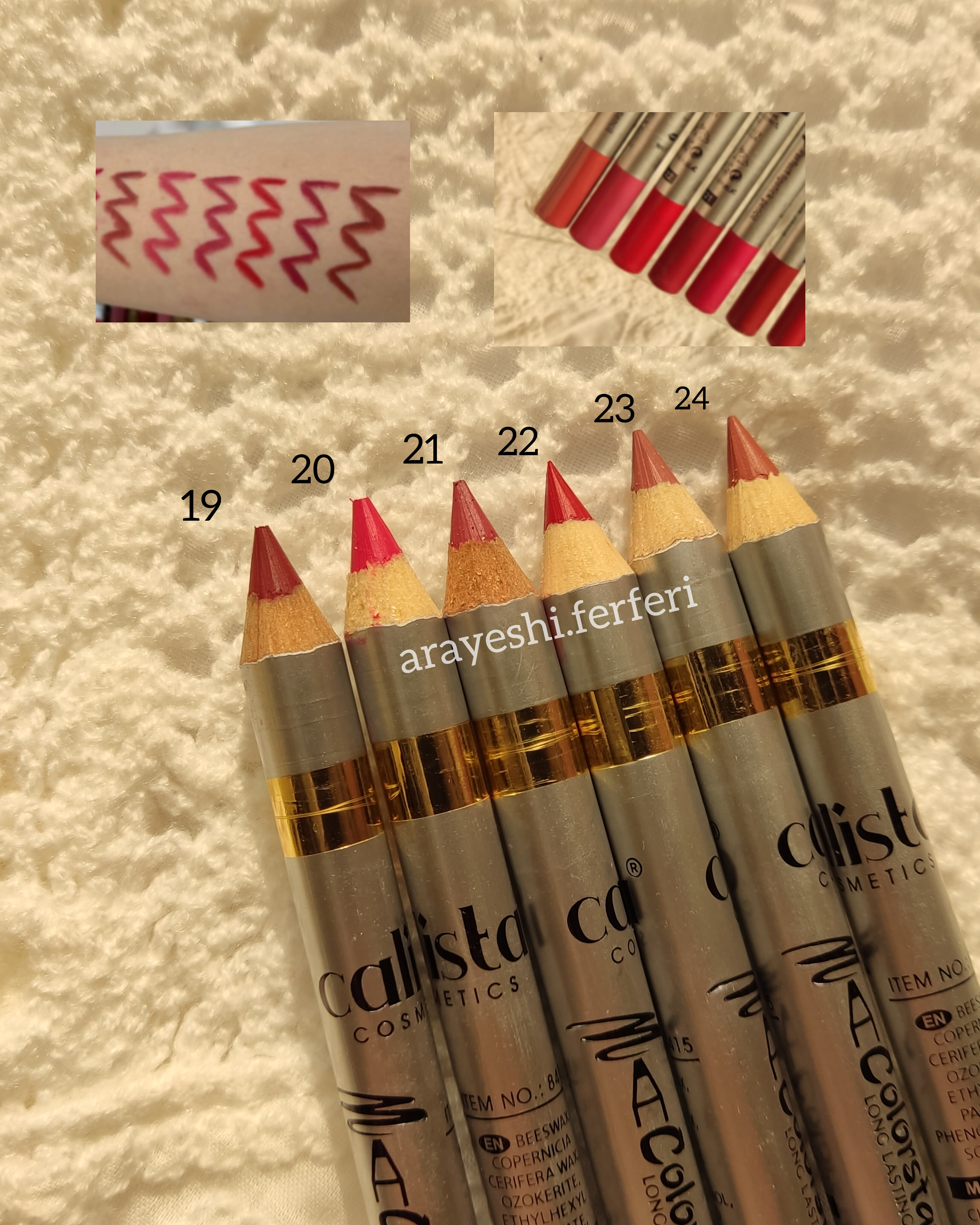 خط لب کالیستا ،۱۲تا رنگ نرم و روون داره بجای رژلب قابل استفادست 💕