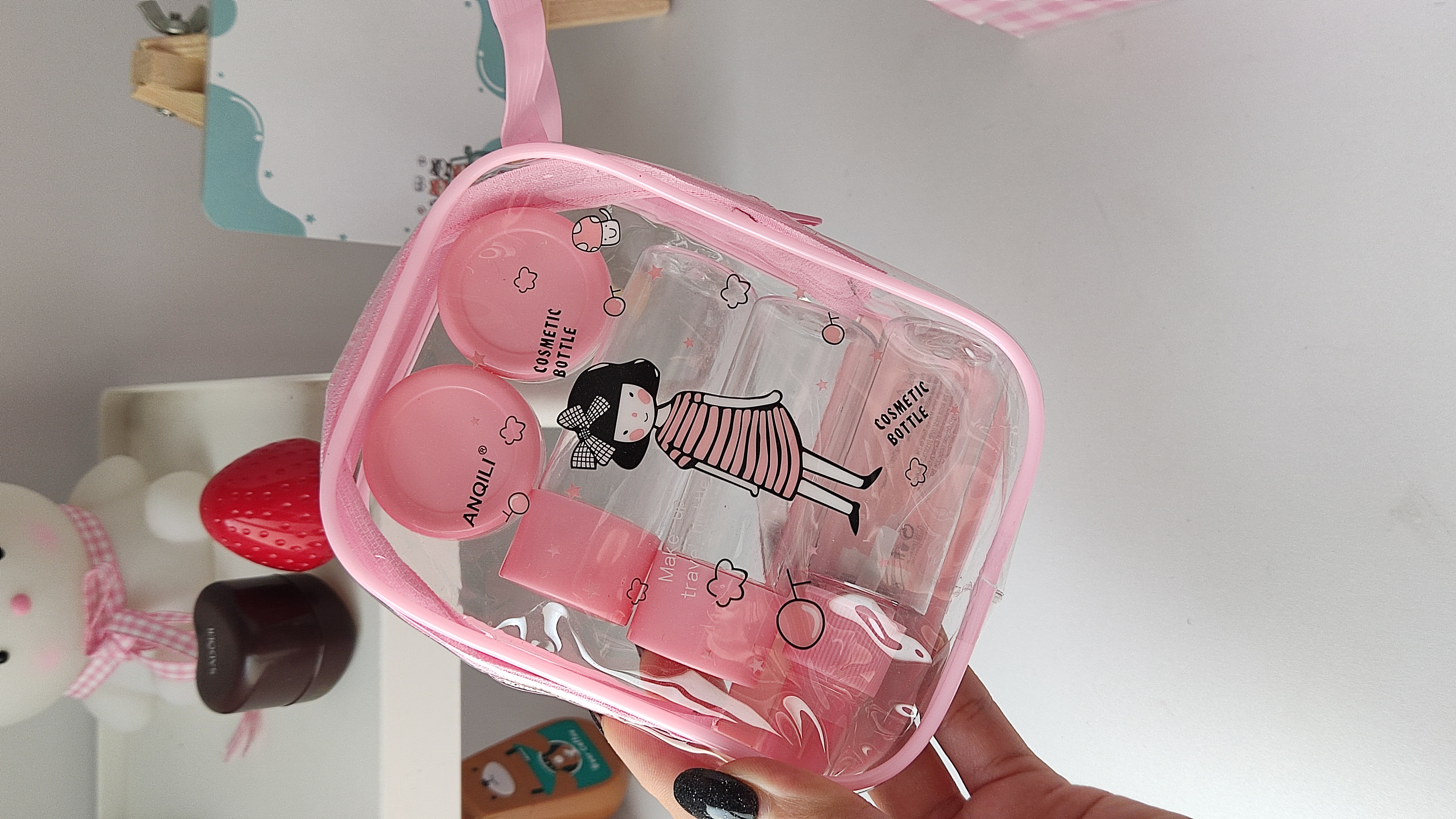 بهترین محصولی که همه جا مخصوصا تو مسافرت داشته باشی این ست مسافرتی،کیف خیلی کیوتی داره حتی جداگونه قابل استفادست 💗۲تا ظرف کوچیک،یدونه قاشق،دوتا بطری،یدونه اسپری داره